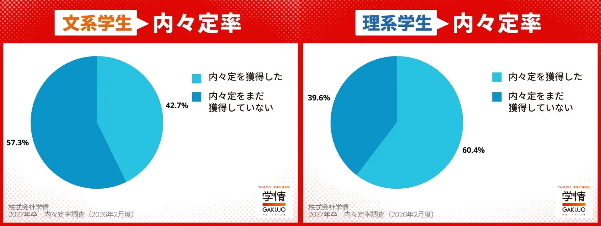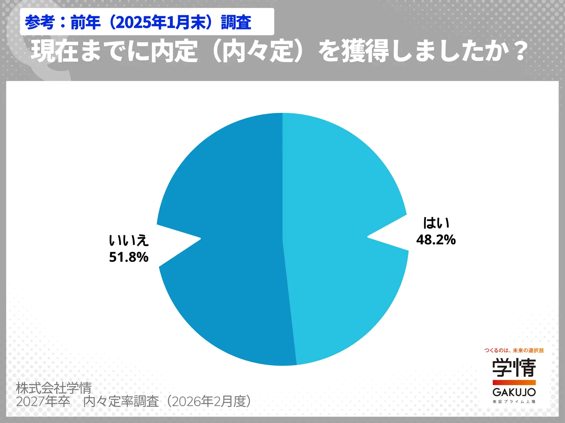株式会社学情(本社:東京都中央区)は、2027年3月卒業(修了)予定の大学生・大学院生を対象に、最新の「内々定の獲得状況」についてインターネットアンケートを実施しました。