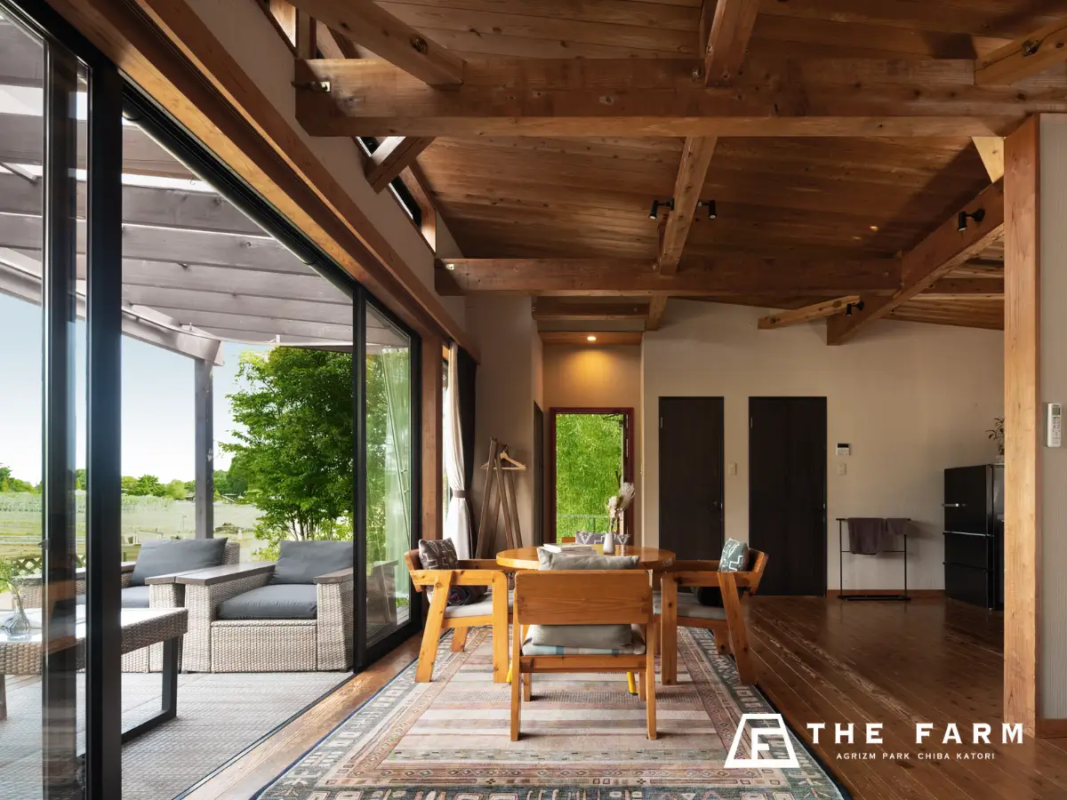 THE FARMコテージは室内でゆったり過ごせる快適派の宿泊スタイル。