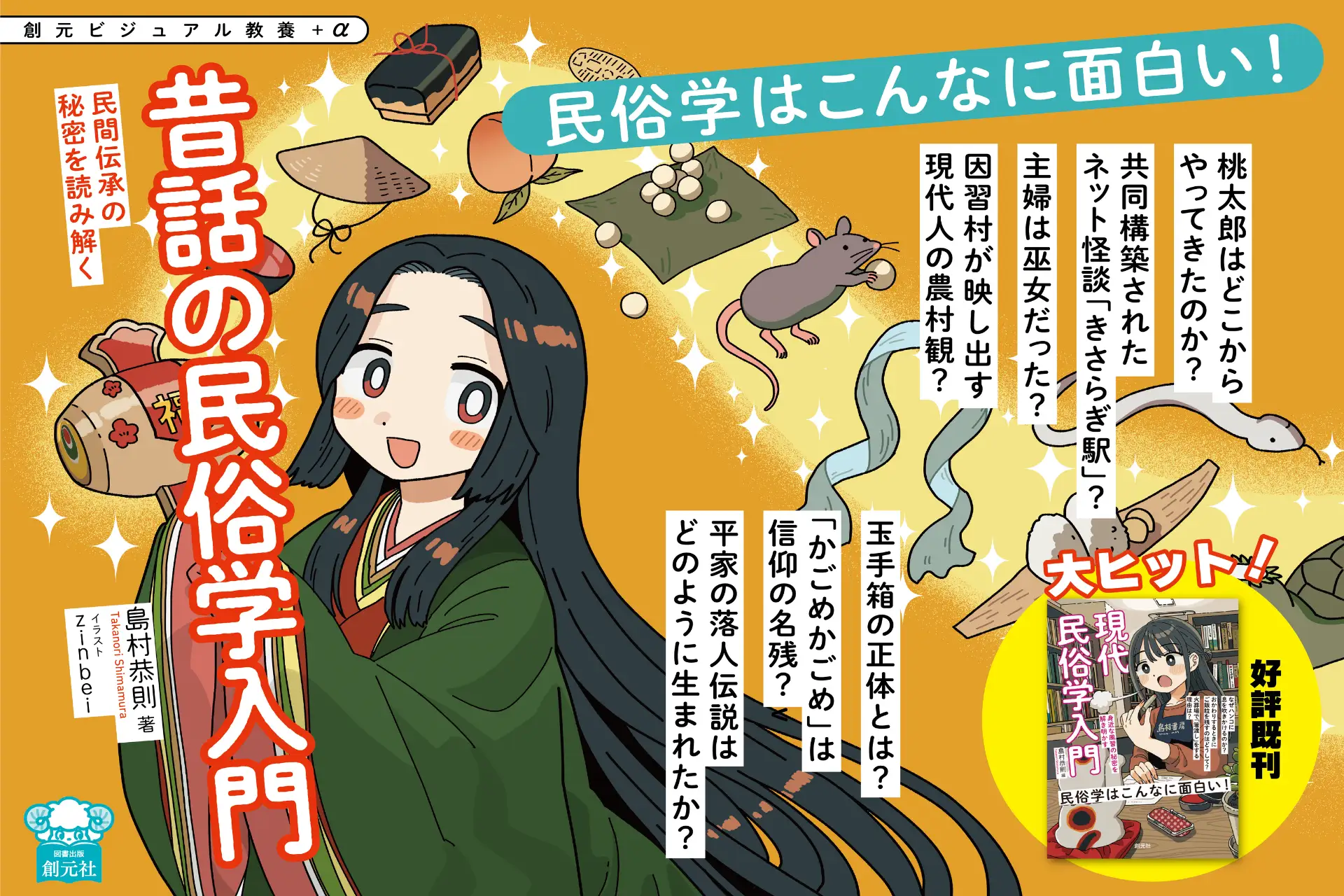 民俗学ブームを背景にヒットした『現代民俗学入門』の続編、『昔話の民俗学入門』が11/25に発売。漫画家zinbeiの図解イラストで民間伝承の謎を解き明かす。一項目、見開き2ページ完結で読みやすい!