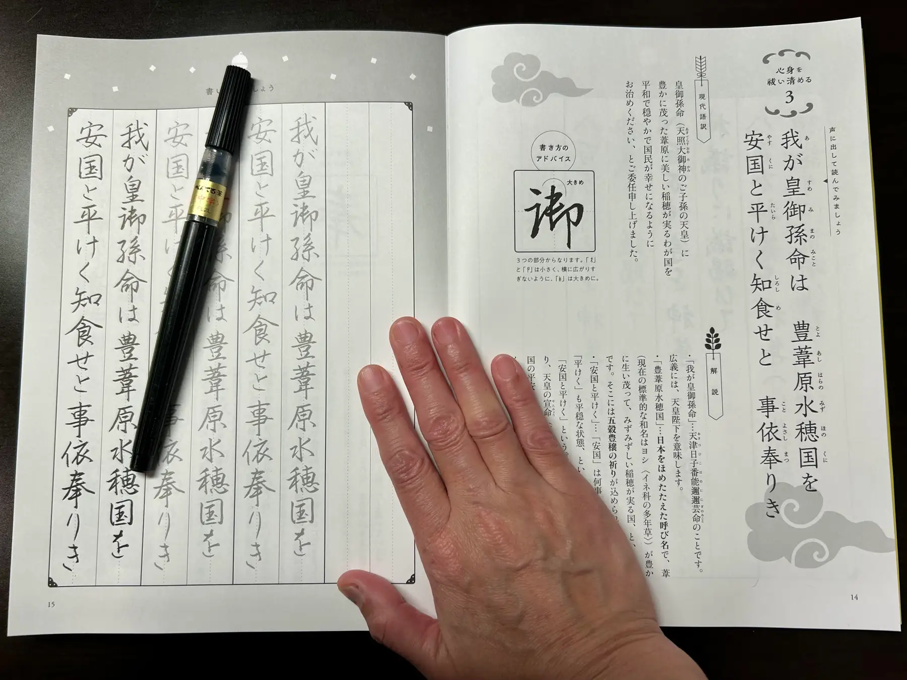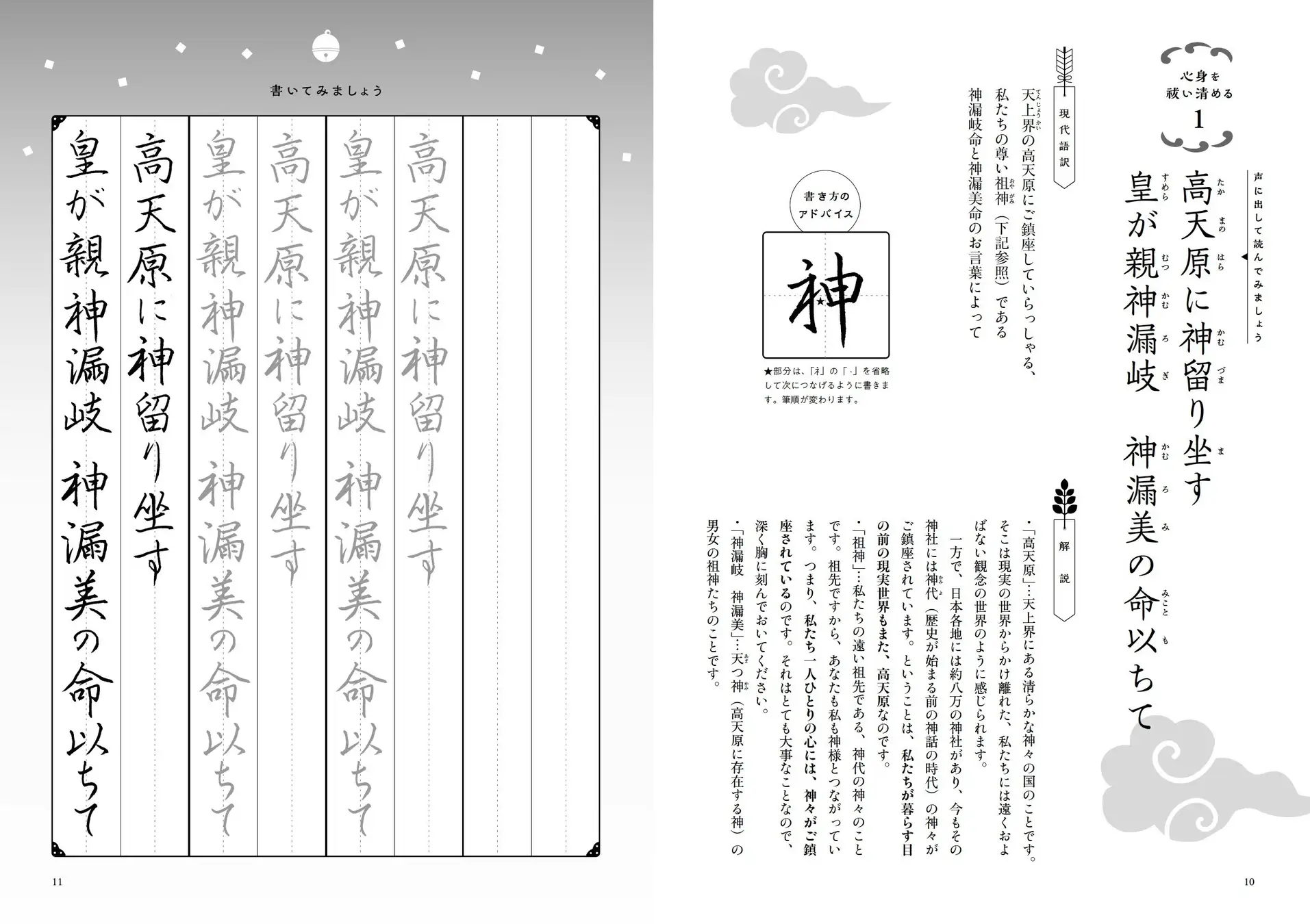 神々の壮大な祓えのパワーをいただくために、声に出して読み、書き写すことは、自分でできる祓えになります。雑念や不安を消し去り、書くことに集中する。心の内側を客観的に眺められ、次第に心が整っていきます。