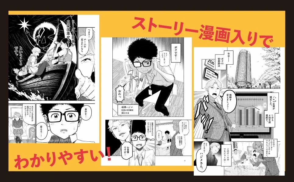 各章冒頭には、新人マネジャー・相澤ハジメが成長していくストーリー漫画(約120ページ)を収録。マネジャーが実際に直面する葛藤・意思決定・チームづくりのリアルを、視覚的かつ直感的に理解することができます。