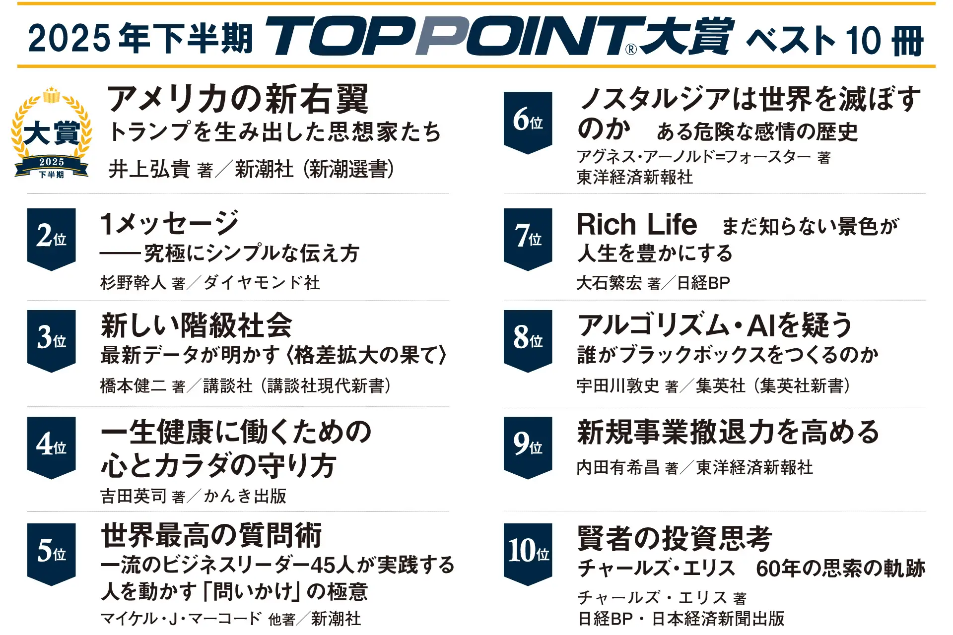 2025年下半期「TOPPOINT大賞」ベスト10冊(一覧)