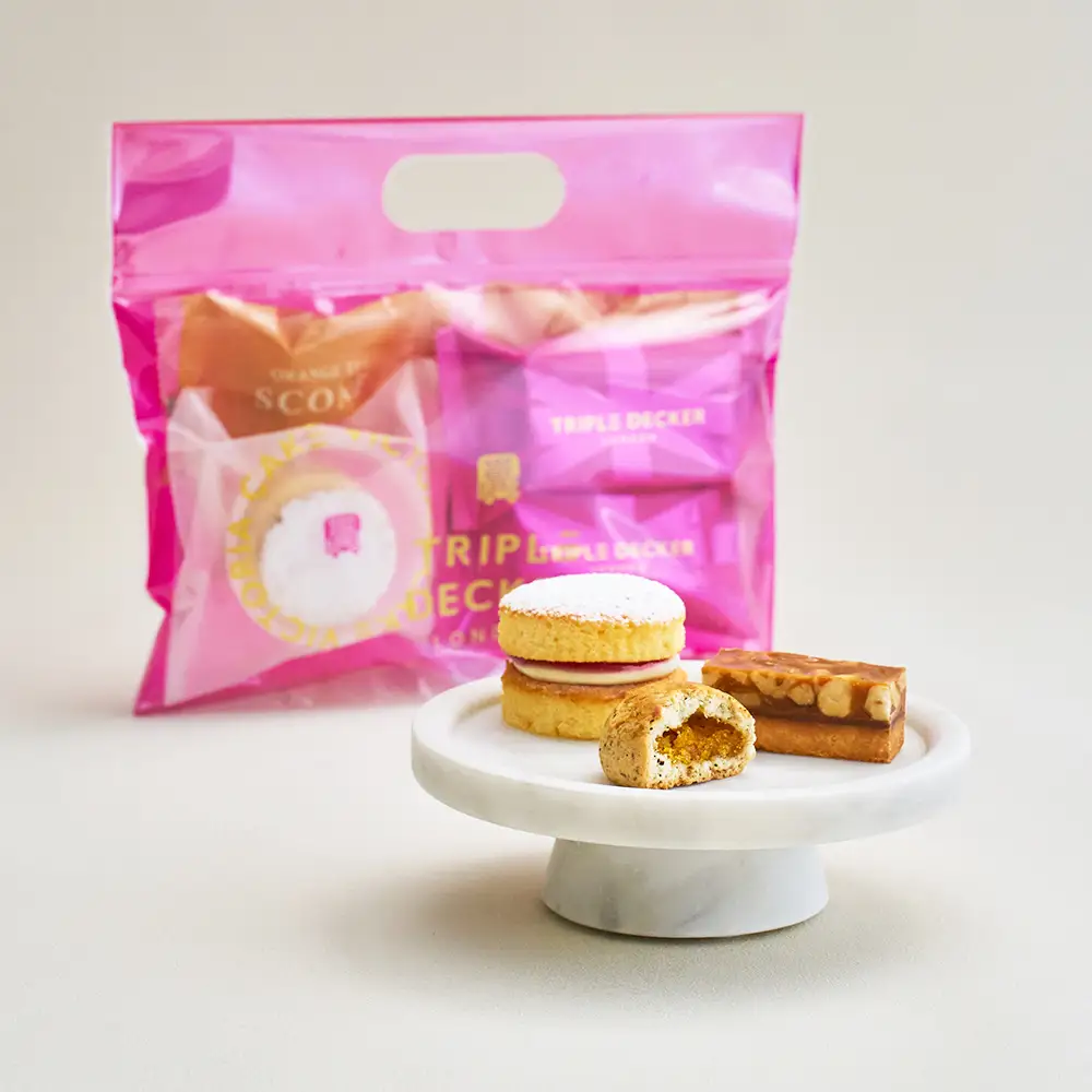 ブランドを代表する「ミリオネアショートブレッド」をはじめ、「オレンジティースコーン」、「ヴィクトリアケーキ」を入れた《TRIPLE DECKER LONDON》の世界観を知っていただける特別なアソートバッグです。