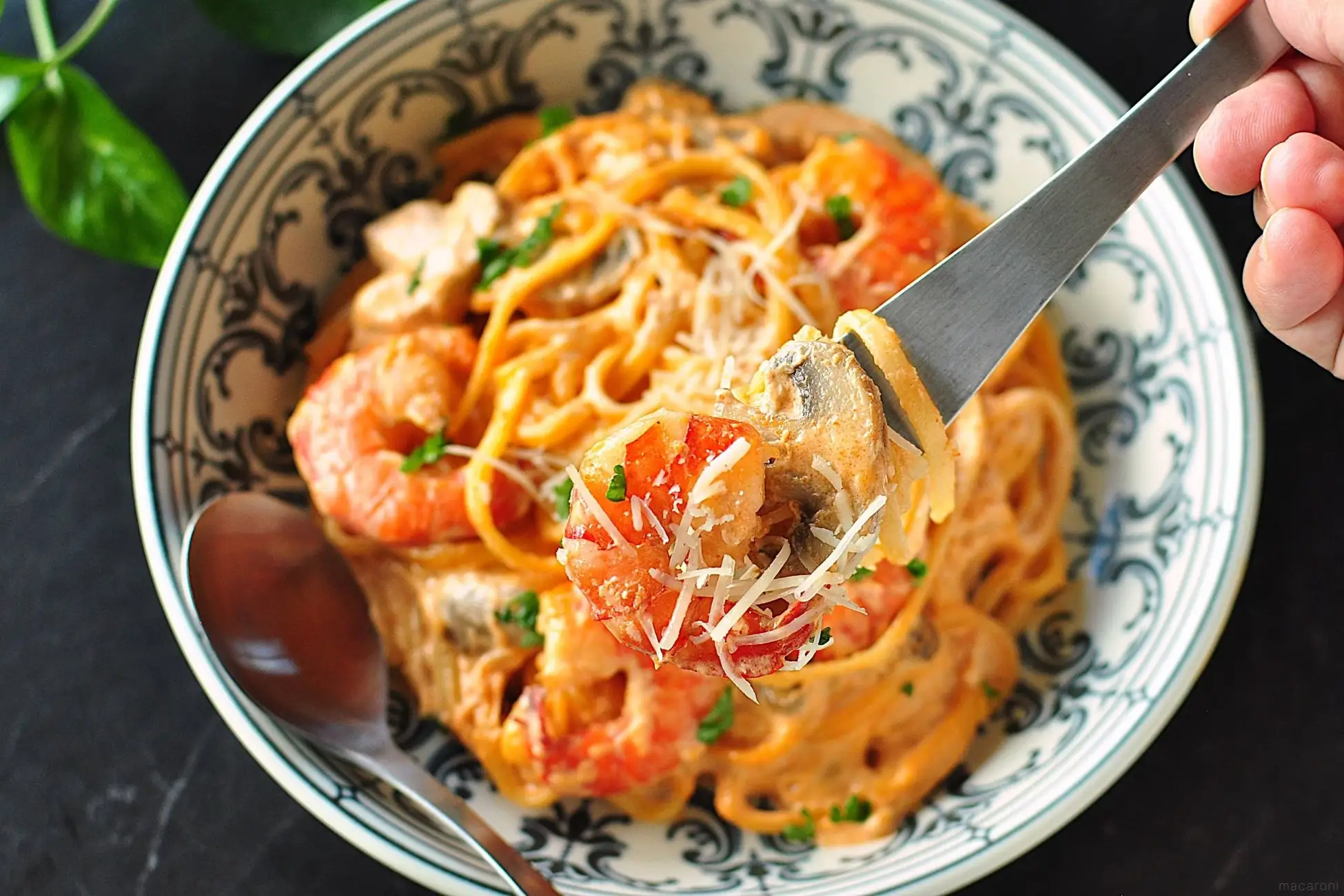 韓国でもっとも愛されているパスタのひとつと言われる「Toomba(トゥーンバ)」。えびとマッシュルームを使った旨辛クリーミーな味わいが特徴です。韓国発の旨辛クリーミーパスタが日本でも注目され、カップ麺などの家庭向け商品としても広がりました。