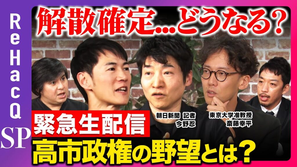 【ReHacQ生配信】高市政権ついに解散決定!!まったり生配信【今野忍vs斎藤幸平vs石丸伸二vs西田 亮介vs高橋弘樹】