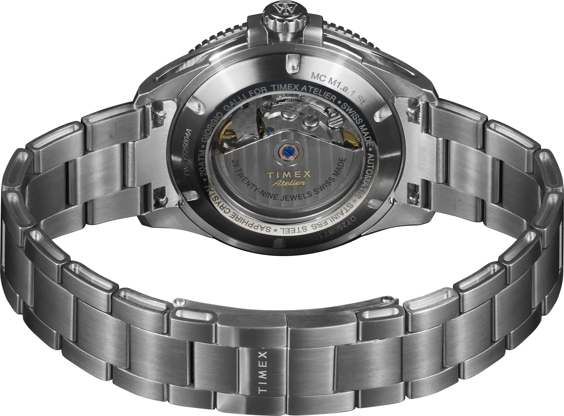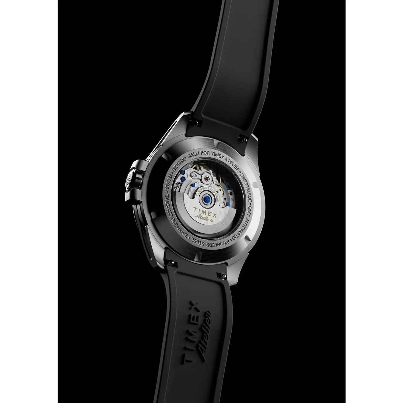 いつもの、そしてこれまでのTIMEXとは一線を画すTIMEX Atelierは、TIMEXのクリエイティブ・ディレクターであるジョルジオ・ガリの時計デザインにおけるキャリアを総動員して手掛ける、スイスで組み立てを行い、サファイ アクリスタル風防やセラミックなど、良質で優れた素材をパーツに用いて作られる、いわば「普段使いのラグジュアリー」です。