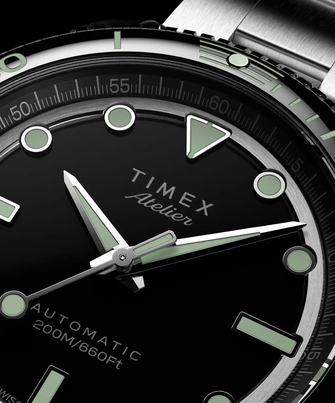 モダンなデザインが浮かび上がるTimex Atelier Marine M1aは、洗練された技術とミニマルなデザインを融合させています。あらゆる面、あらゆるプロファイルが、バランスの取れたプロポーションと快適な着け心地を実現するために形作られています。これは単なるレトロフューチャーではありません。日常使いのために設計された、まさに現代的なツールウォッチです。