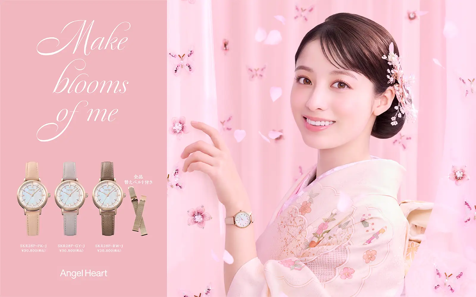 さらに新生活シーズンに向けて、桜モチーフがやさしく揺れる空間で着物をまとったブランドミューズ橋本環奈さんの新ビジュアルを公開。晴れやかな和装が、日本製モデル『SAKURA TIME』の上品で凛とした佇まいをより一層美しく引き立てます。