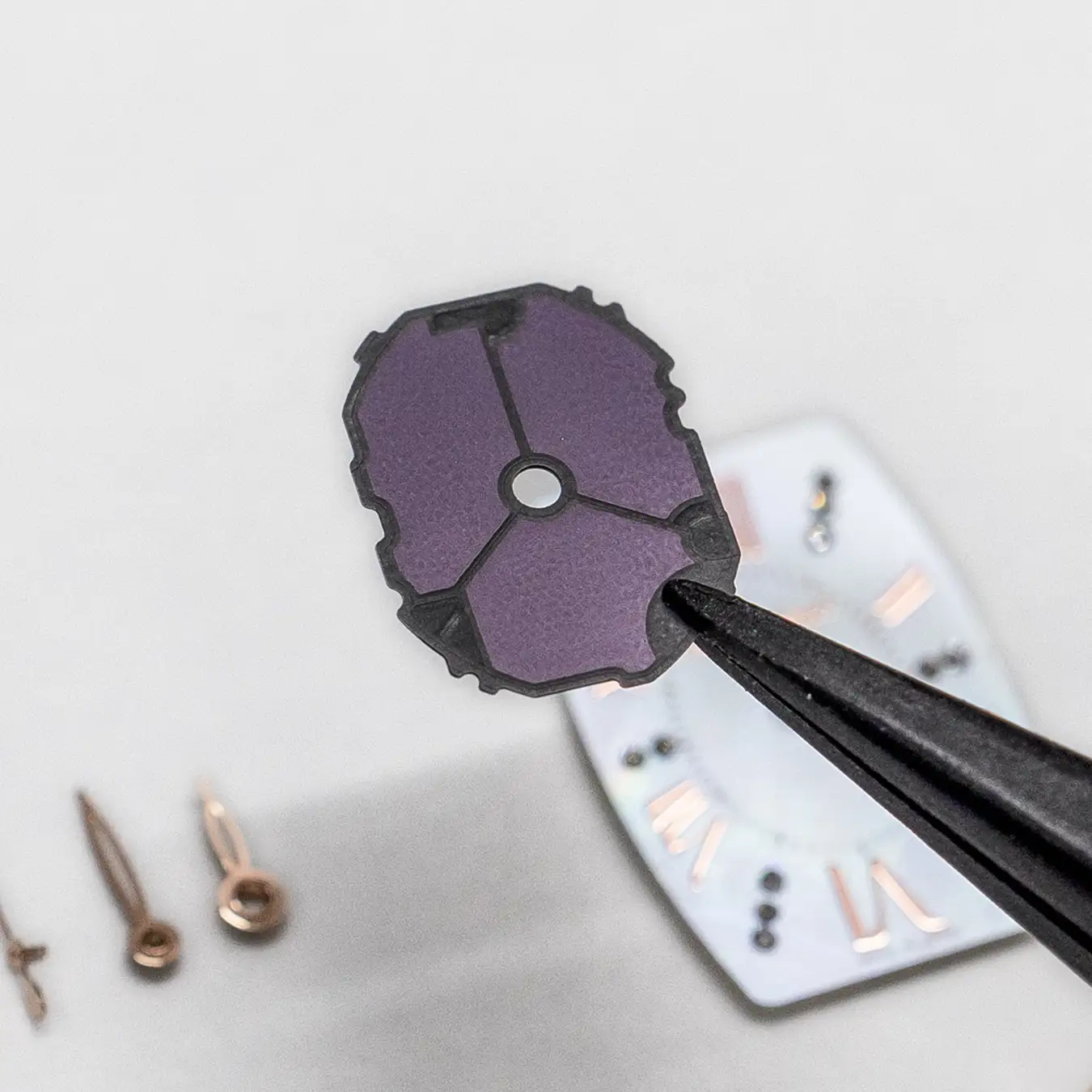 秒針にサクラの花びらのデザインを施しました。毎秒時間を刻むたび、桜の花びらがかわいらしく動きます。
