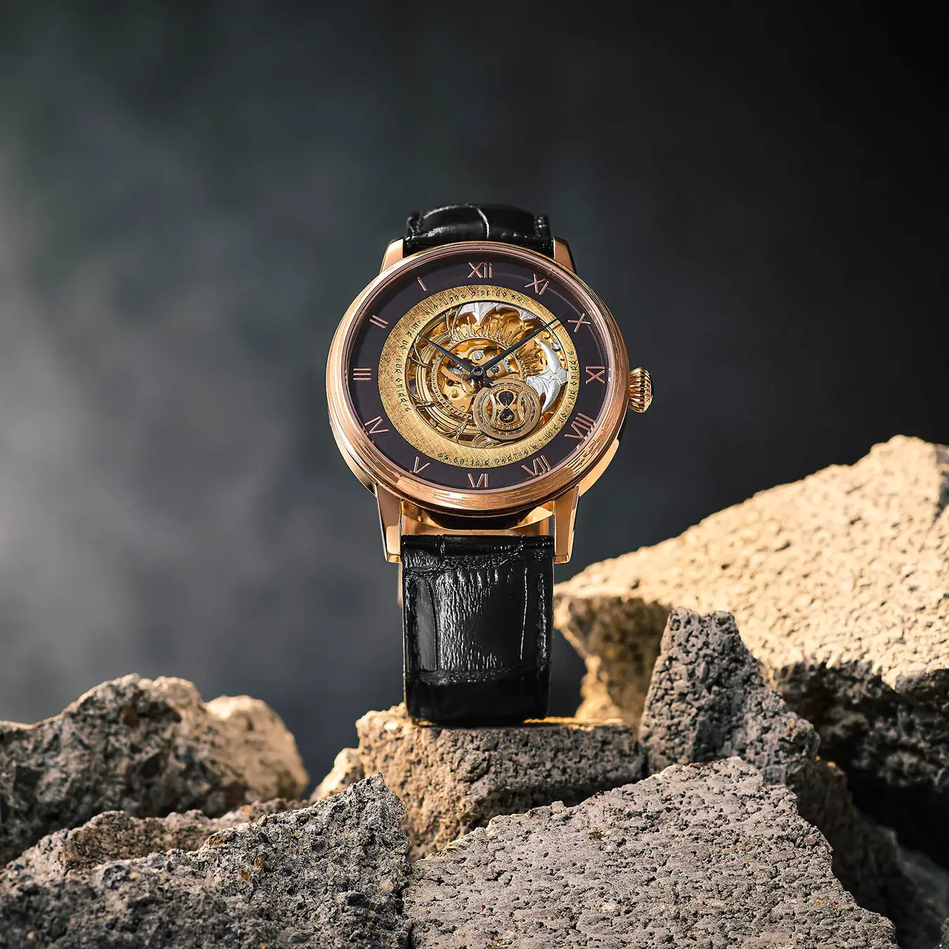 文字盤は主人公やルゥ・マグメルが使用する伝承術式「戦斧・イドリスの驕り」をモチーフにしたスケルトン仕様。