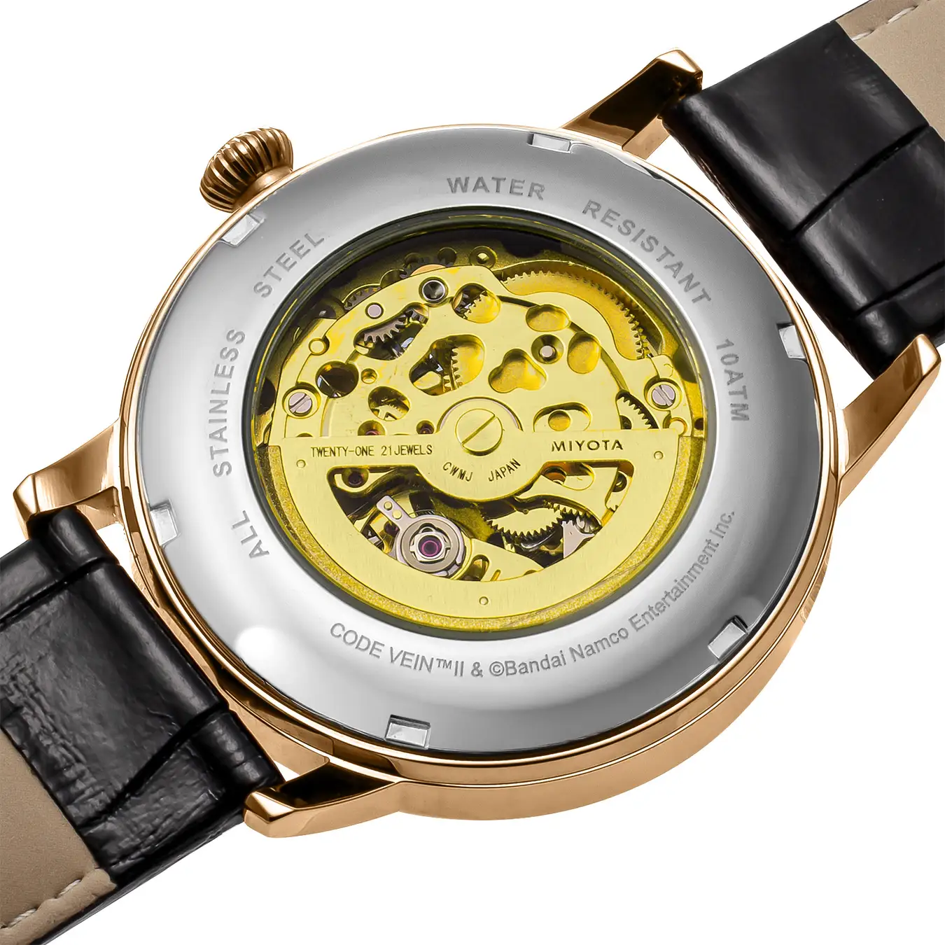 ドラマティック探索アクションRPG『CODE VEIN II』に登場する主人公やルゥ・マグメルが使用する伝承術式「戦斧(せんぷ)・イドリスの驕り(おごり)」をモチーフとした機械式時計を