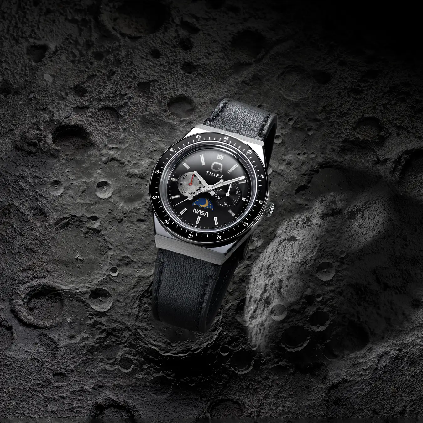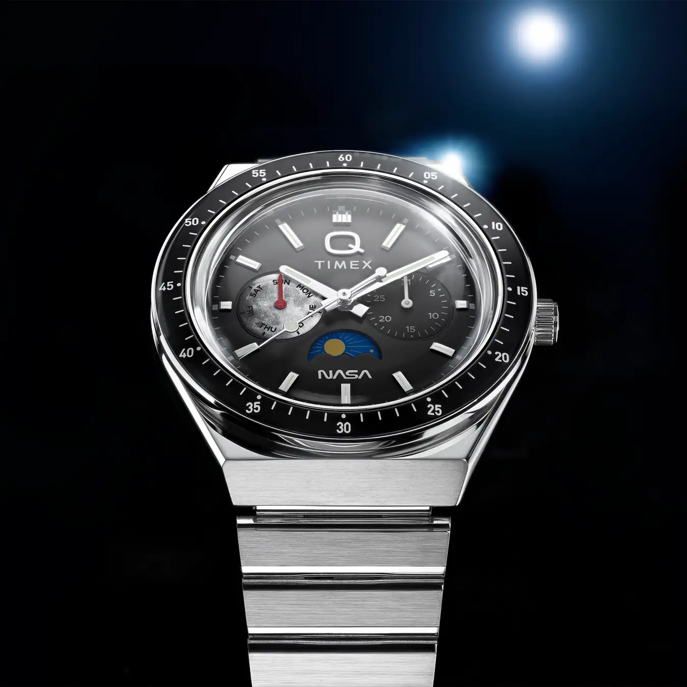 1970年代のクォーツウォッチを現代に蘇らせた「Q Timex」のレトロな造形美に、宇宙探索のロマンを詰め込んだコラボレーションです。
