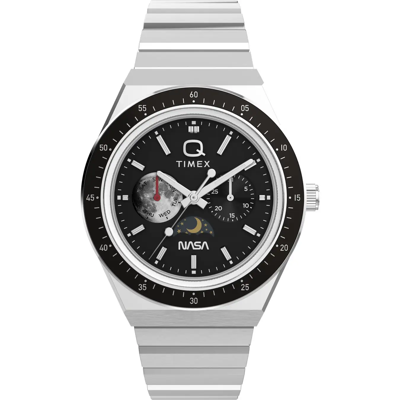 1970年代のクォーツウォッチを現代に蘇らせる復刻「Q Timex」シリーズをベースに、宇宙探索の歴史を物語るディテールを随所に散りばめています。