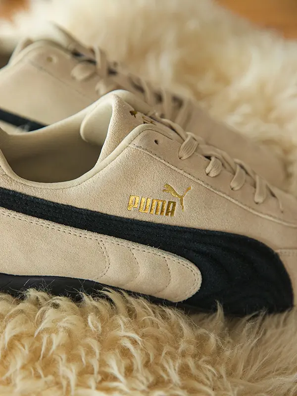 また、トゥ部分のPUMAロゴ刺繍はアッパーと同色でさりげないデザインに。ゴールドのサイドロゴがアクセントとなり、デイリーに取り入れやすい上質な佇まいの一足です。