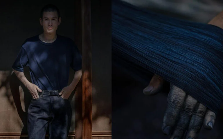 この地で誕生したMOMOTARO JEANSは、幾度も染め上げて到達した、深い藍色と独特な風合いの「特濃 – TOKUNO BLUE」を特徴としています。