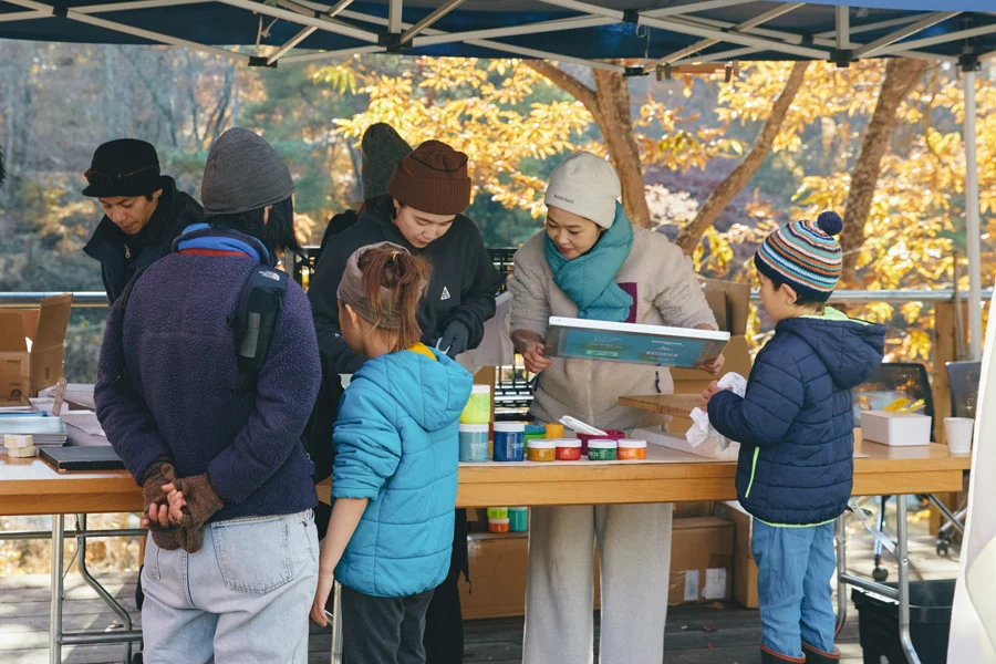 新しい一年への気持ちをみんなで書(描)いて、モニュメントを完成させよう! キャンパスに見立てた真っ白なタープで囲われたモニュメントが会場内に登場。みんなで自由に絵を描いたり一年の抱負を書いたり。門松のぬり絵もあります。また、当日みんなで描いたタープはイベント終了後に回収し、後日THE GOODLAND MARKET ニュウマン高輪店にてポーチにするなどのワークショップを開催予定です。