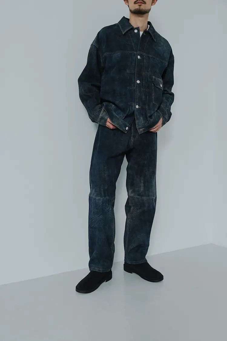 最大の魅力は、長年着込んだような深みのある表情を演出する特殊なアンティーク加工。ブランドが大切にする「カジュアルの中に見え隠れする上品さ」を体現したこのアイテムは、セットアップでの着用は勿論、上質なスラックスなど相反する素材とも不思議なほど調和します。
