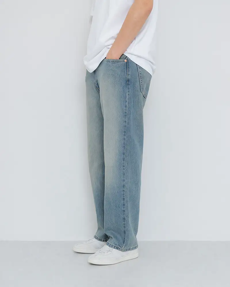 腰の位置が低くゆとりがありながらストレートなシルエットで、現代的でゆったりとしたフィット感を実現。
