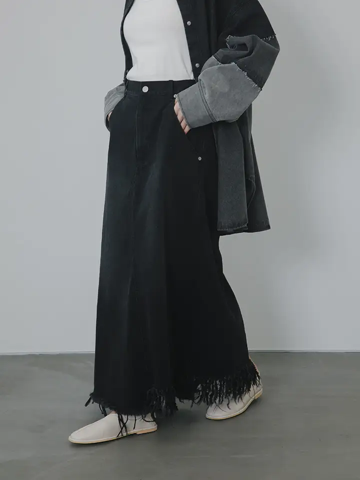アシメフリンジデニムスカート ¥8,800 (tax incl.)