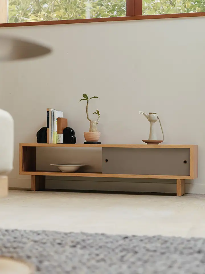 洋室はもちろん、和室にも馴染む佇まいで、文庫本や小物などの収納として、またテレビボードとしても活躍します。