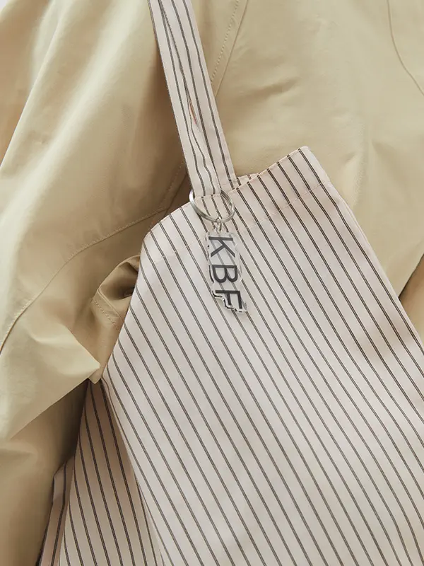 人気のランダムタックデザインストライプシャツの生地を使用したトートバッグです!