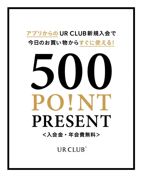 期間中、UR CLUBに新規ご入会いただいたお客様へ、その場でご利用いただける500ポイントをプレゼントいたします。
