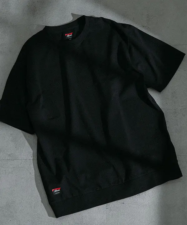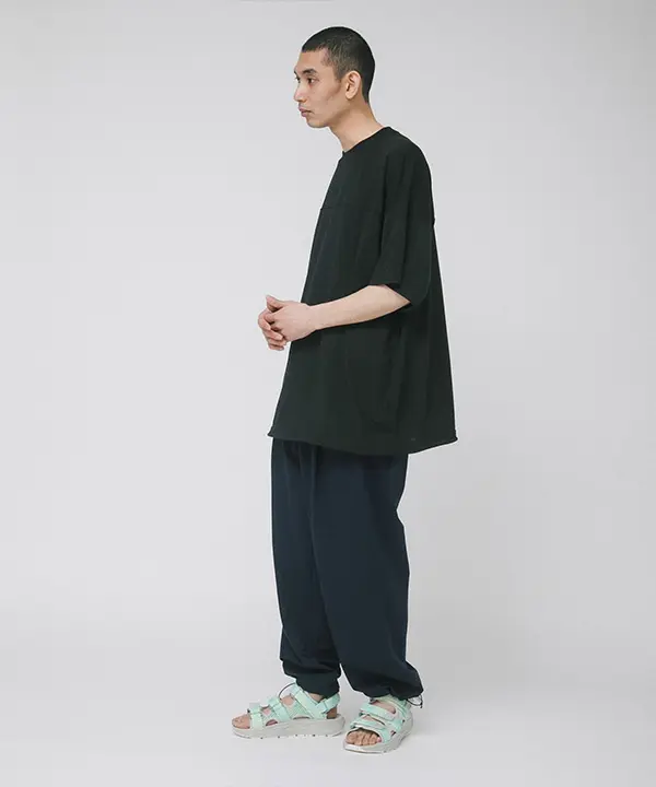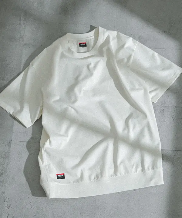 環境に配慮したリサイクルコットン、Ferre Yarn(フェレヤーン)を使用。NANGAオリジナルサイズのボディに、裾はスウェットライクなリブを付けた特別な仕様で、クリーンなトレーニングウェアを彷彿とさせるディテールを取り入れています。