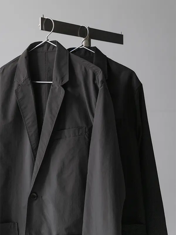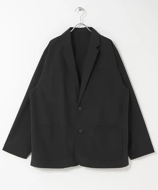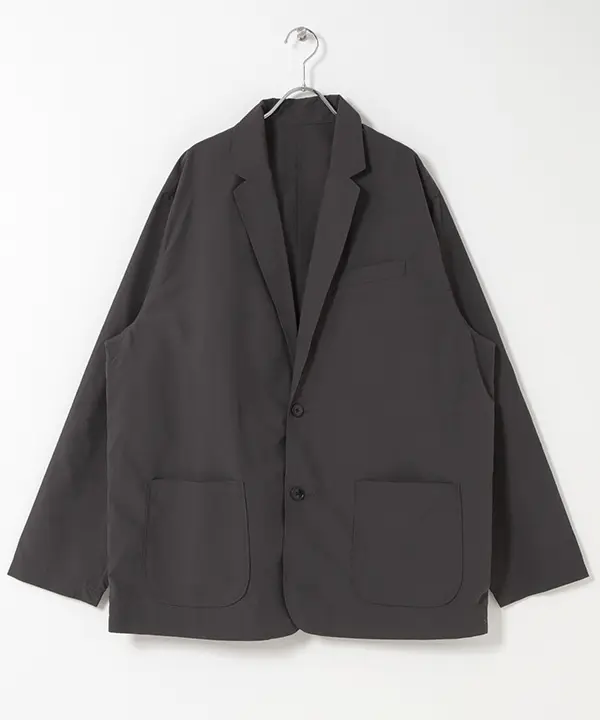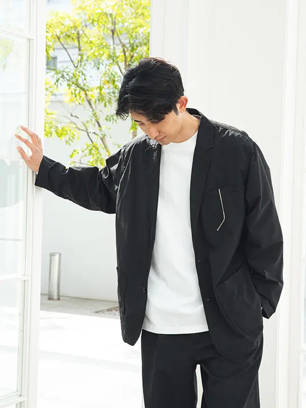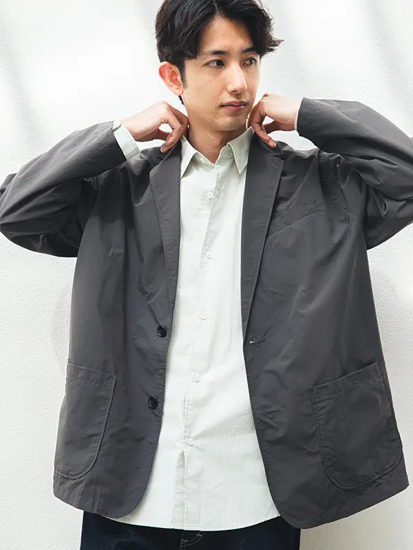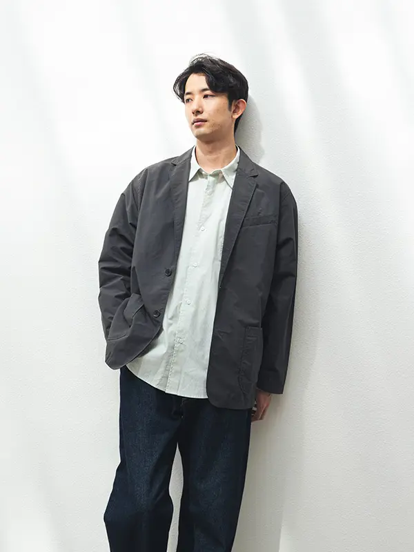 ジャケットのサイズ感はゆったりとしたリラックスシルエット。2ボタンのシンプルな仕様で、気軽に羽織れる一着です。