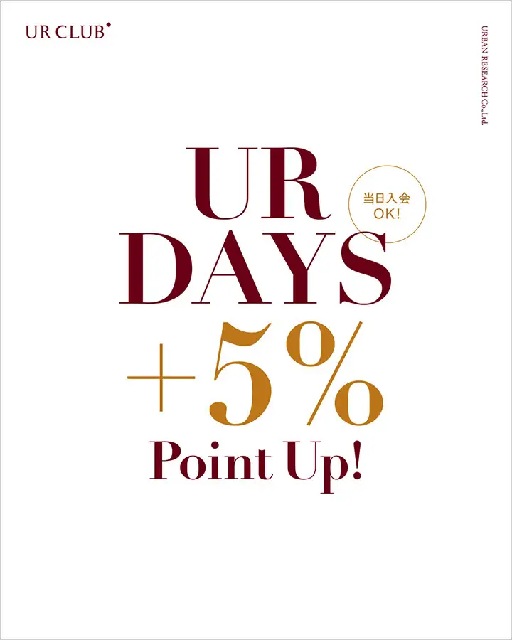 期間中にお買い物いただくと通常ポイント還元率+5%のUR CLUBポイントをプレゼントいたします。