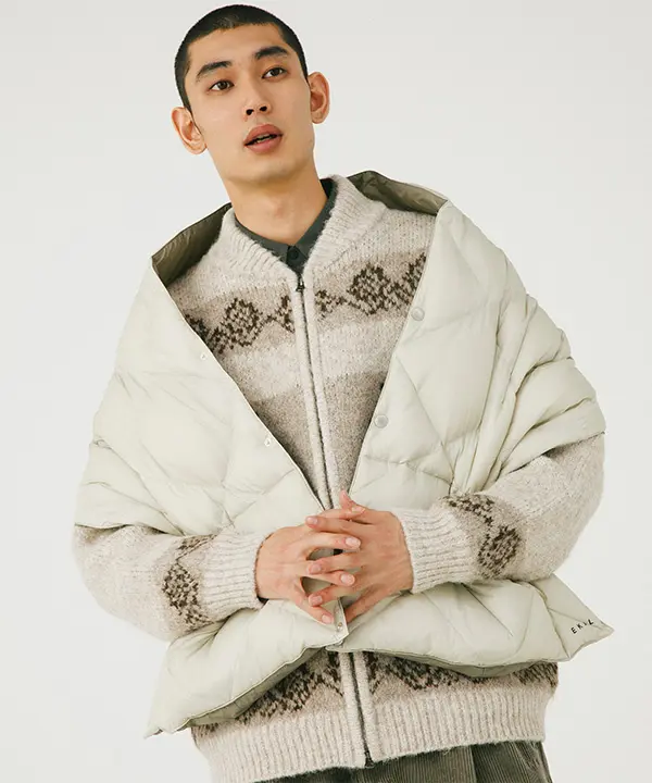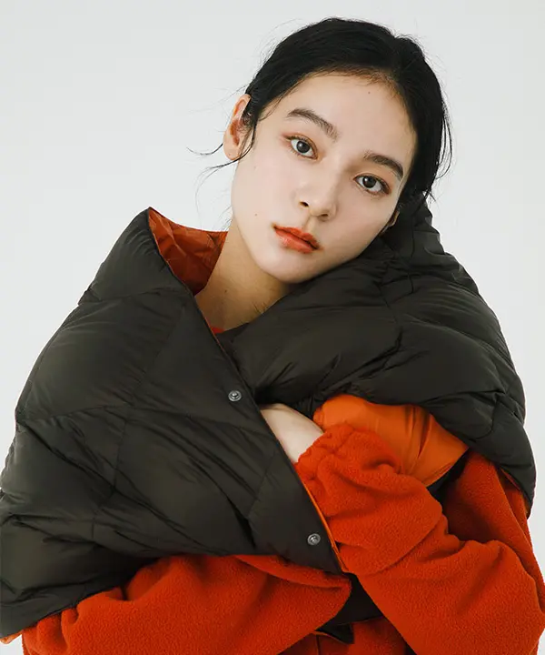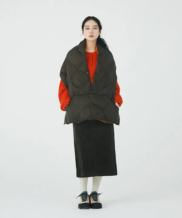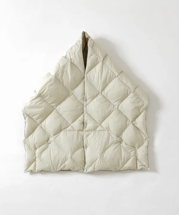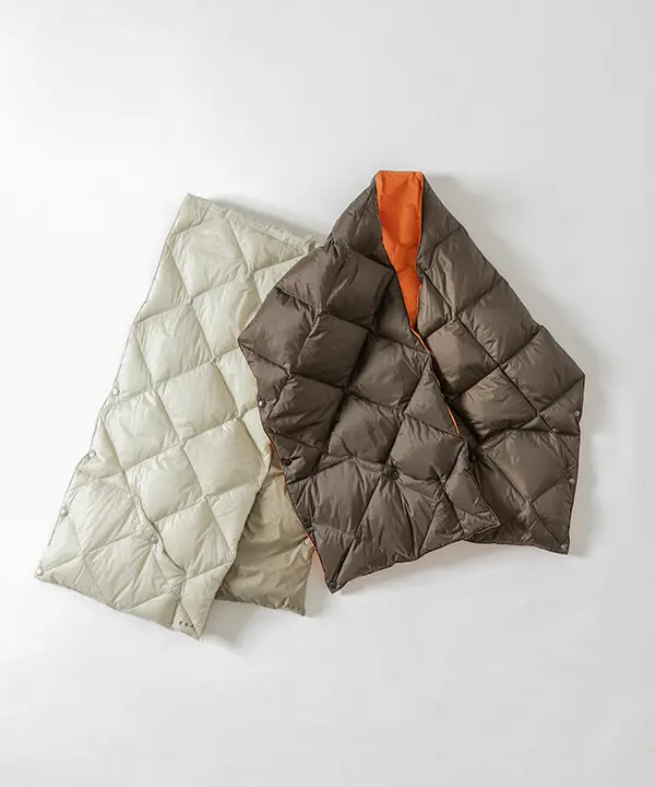 TAIONが得意とする、軽量かつ嵩高性のある800FPのダウンを使用したジャケットに加え、UNISEXアイテムとしてご使用いただけるダウンショールをご用意。