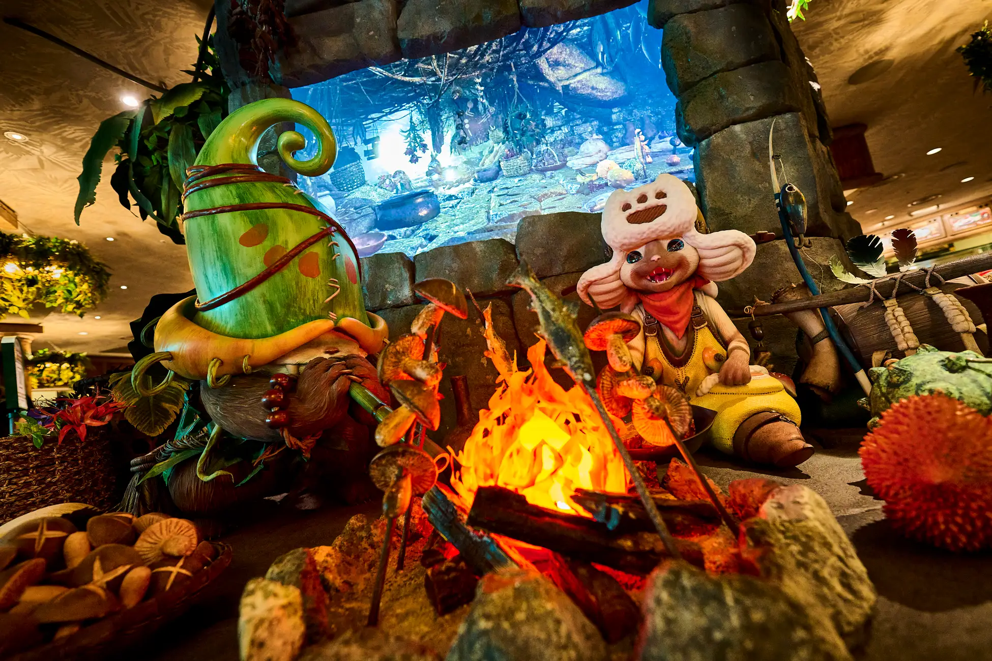 本日は、「モンスターハンター」の熱烈なファンたちが、本レストランを先行体験しました。作品世界そのままの“超リアル”なモリバーのアジトに入り込み、味わい深い焚き火料理にかぶりつく、力みなぎる“超衝撃”の食体験に、体験したゲストは、「モリバーが本当に出てきそう 」、「ワイルズの世界にいる!って感じ 」、「お肉やチーズナンを実際に食べられて嬉しい。エネルギーが湧きました」と超興奮して語りました。