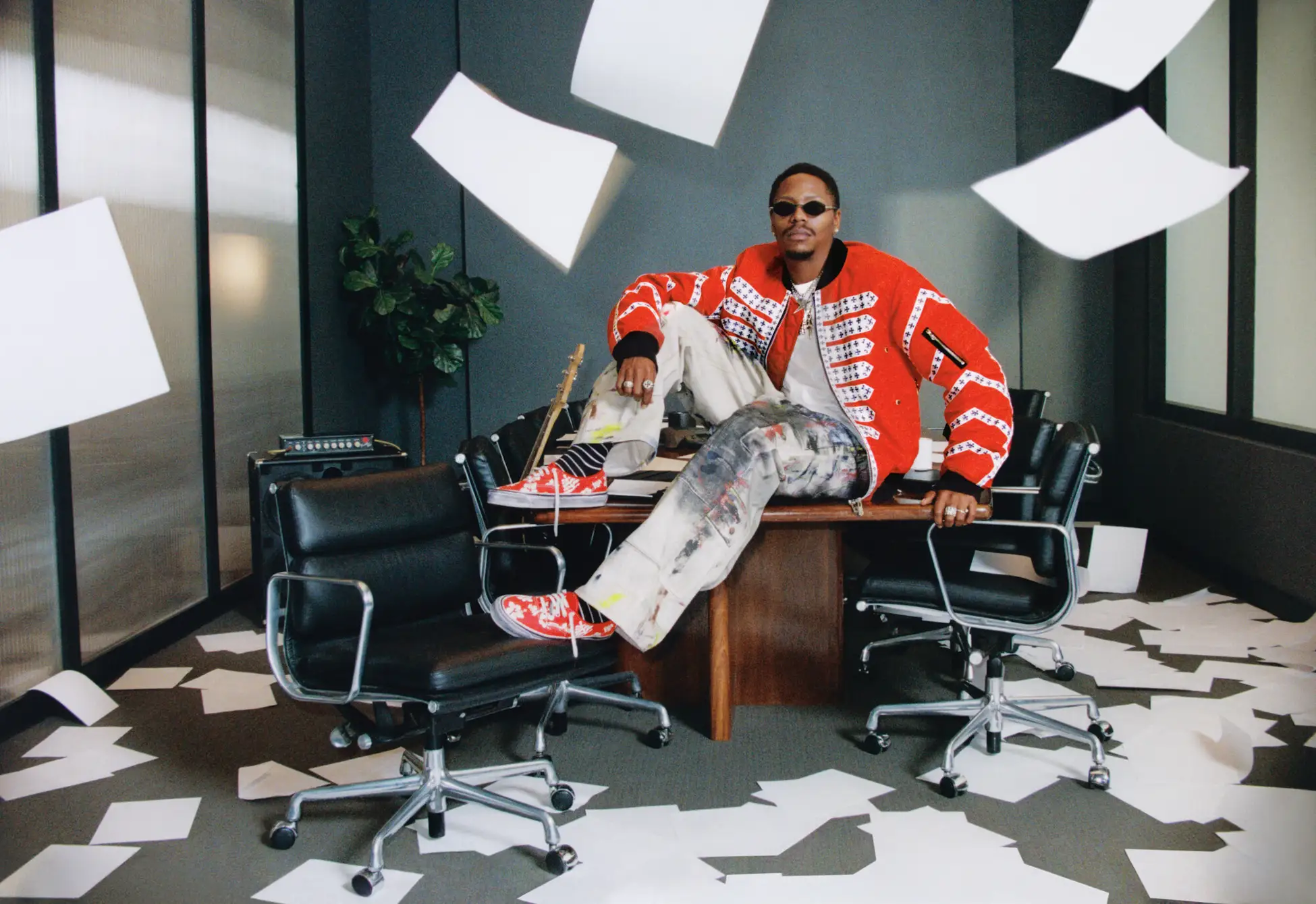 ビジュアルのストーリーでは、退屈で窮屈な日常空間にキャストたちが突如として現れます。待合室にヘイリー・ウィリアムズ、静かな郊外にトラヴィス・バーカー、ネットカフェにSZA、会議室にフランツ・ライオンズ — 創造性と抑圧のコントラストの中で、静かなシューズが、騒がしい人生を彩ります。