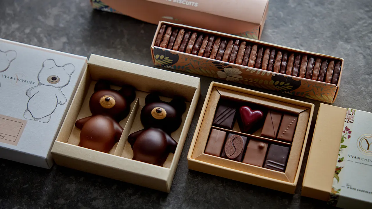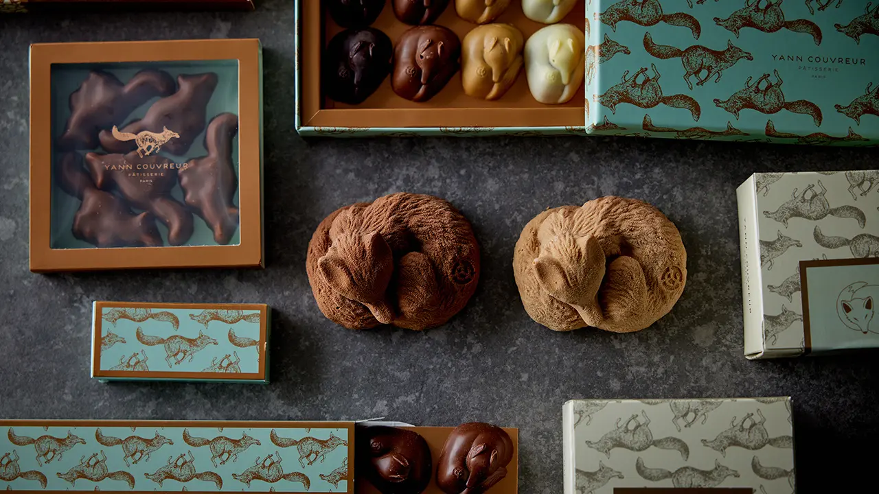 人工的な保存料や香料は一切使わない、シェフの哲学。ブランドのアイコンである「キツネ」の形をしたショコラに表現される、素材を最大限に生かしたエレガントな味わいは一流の料理人が仕立てるような、緻密なショコラと評されます。