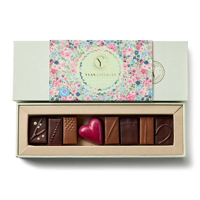 8種のショコラが1粒ずつ詰まったイヴァンの定番コフレ。ガナッシュは素材の風味を最大限に引き出し、口に入れた瞬間に溶けるような滑らかさを追求。プラリネは、ナッツの香ばしさとキャラメリゼのバランスが絶妙で、独特のサクサクとした食感を実現しています。