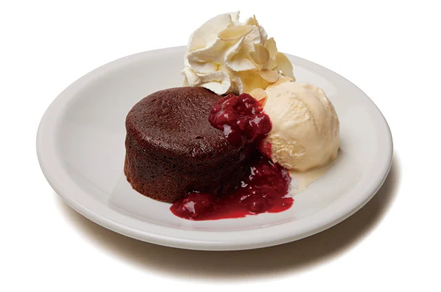 とろりと弾むようにくちどける、しっとり濃厚なフォンダンショコラ。甘い香りのバニラアイス、果肉たっぷりのラズベリーソース、アーモンドスライスをトッピングしたふわふわの生クリームと一緒に盛り合わせました。ひと口ごとに変わるおいしいハーモニーと甘い余韻をおたのしみください。