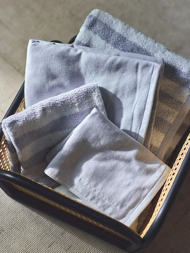「バスタオル」「フェイスタオル」「ハンカチタオル」は、上質でやわらかく、毎日のケアに寄り添うアイテムです。白とグレーのシンプルな配色で、贈り物としても選びやすく、ギフトボックスも用意しています。
