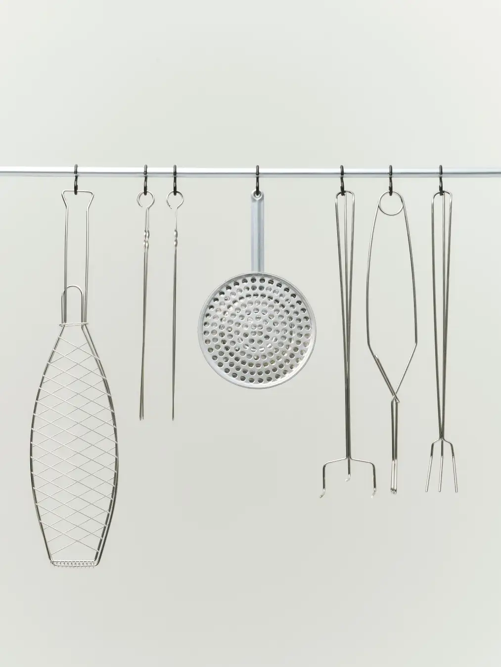 丈夫なステンレススチールを使用し、その名の通り「魚」のシルエットを模した遊び心あふれるデザインが特徴です。魚を挟んで焼くことで、身崩れを防ぎ、両面をきれいに焼くことができます。もちろん、魚だけでなく野菜やその他の食材のグリルにも最適。グリルや焚き火などの熱源から安全に距離を保てるよう、持ち手は長めに設計されています。