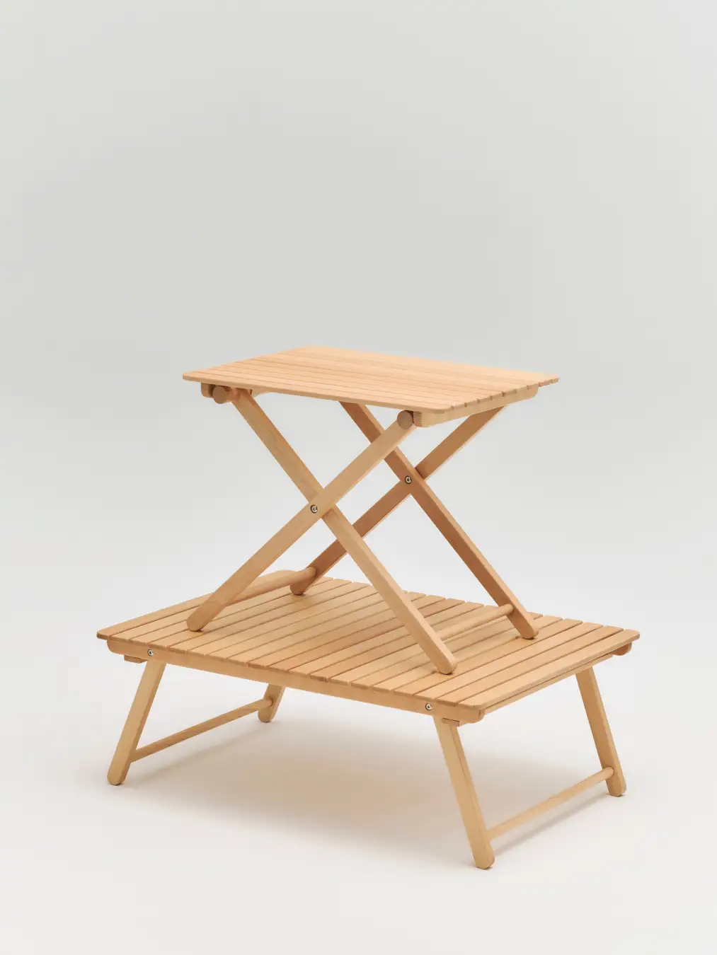 軽量なビーチ材を贅沢に使用したFolding Tableは、屋外での時間をより快適でスタイリッシュに演出します。簡単に折りたためる設計で庭やテラス、キャンプなど、お気に入りの場所をすぐにダイニングやワークスペースに変えてくれます。持ち運びに便利なハンドル付きの専用バッグが付属し、保管時も場所を取らずに収納可能です。