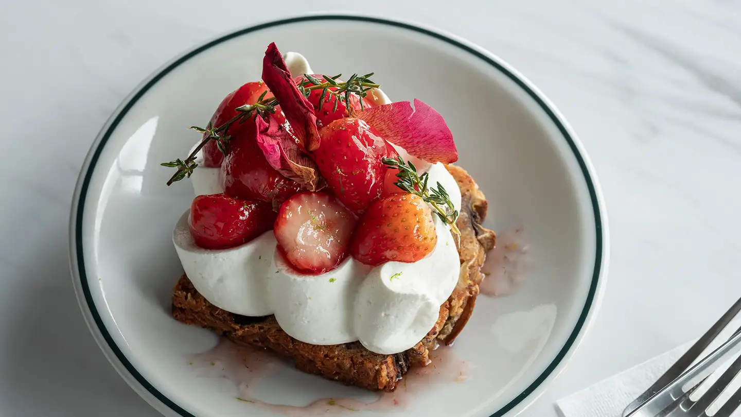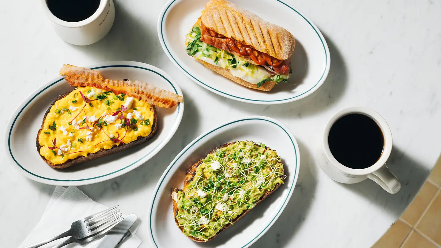さらに、3種のカントリーブレッドと彩り豊かなデリを組み合わせた「ブレッド & デリ」プレートや、「アボカドトースト トマトマリネ & グレイン」など、ブレッドとともに味わえるメニューも豊富にラインナップ。スイーツは、季節のフルーツをあしらった「苺のリコッタクリームのバナナブレッドトースト」「ストロベリーギリシャヨーグルトプディング」など、オーダーに合わせて仕上げる上品で彩り豊かなメニューが揃います。