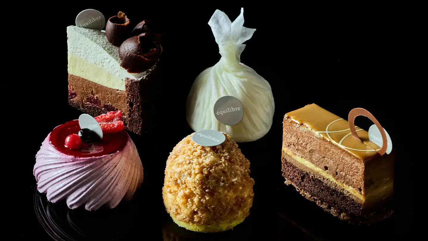 品川店リニューアル時に仲間入りした同店。店名はフランス語で「バランス」を意味し、パティシエ徳永純司氏は「食感・香り・酸味・甘味・季節感など口の中に入れて心地よいお菓子を大切にしたい」と語っています。「フォレノワール」「クレメダンジュ」「キャラメルショコラオランジュ」「ニューヨークチーズケーキ」「カシス」の5種類のケーキが届きます。