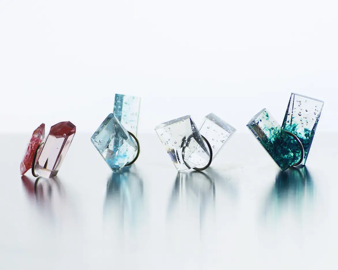 「shisui(シスイ)」は、水をテーマにガラスや金属など異なる素材を用いて制作を行うジュエリーブランドです。バーナーワークの技法を用い、水という流動的な存在をガラスとして定着させる表現を展開しています。