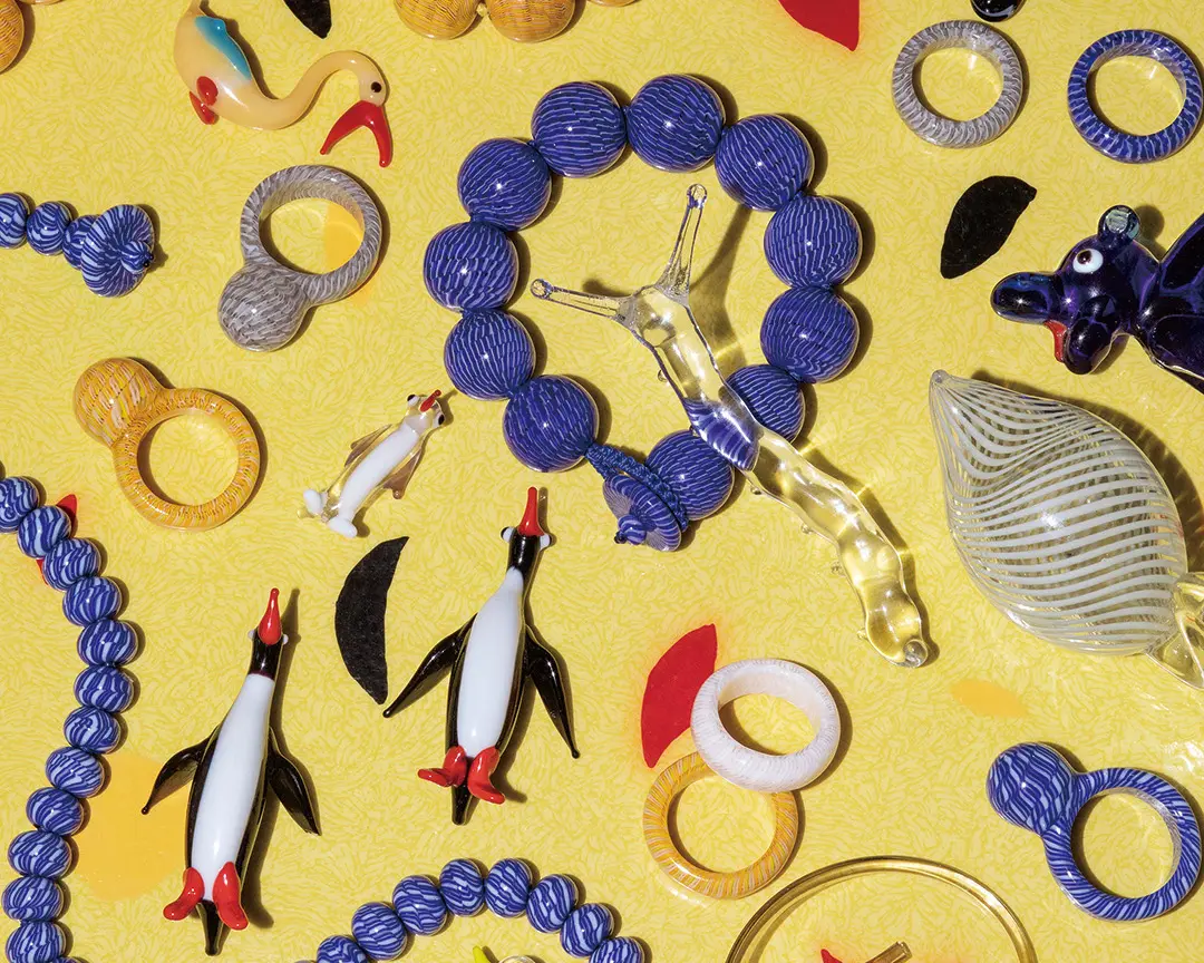 LULI LAMPWORK(ルリ ランプワーク)は、ベルリンを拠点とするデザインスタジオによるジュエリーブランドです。とんぼ玉の技法を用い、複数の色ガラスを撚り合わせて巻き付けることで、線状の模様を持つ装飾的なガラス表現を特徴としています。