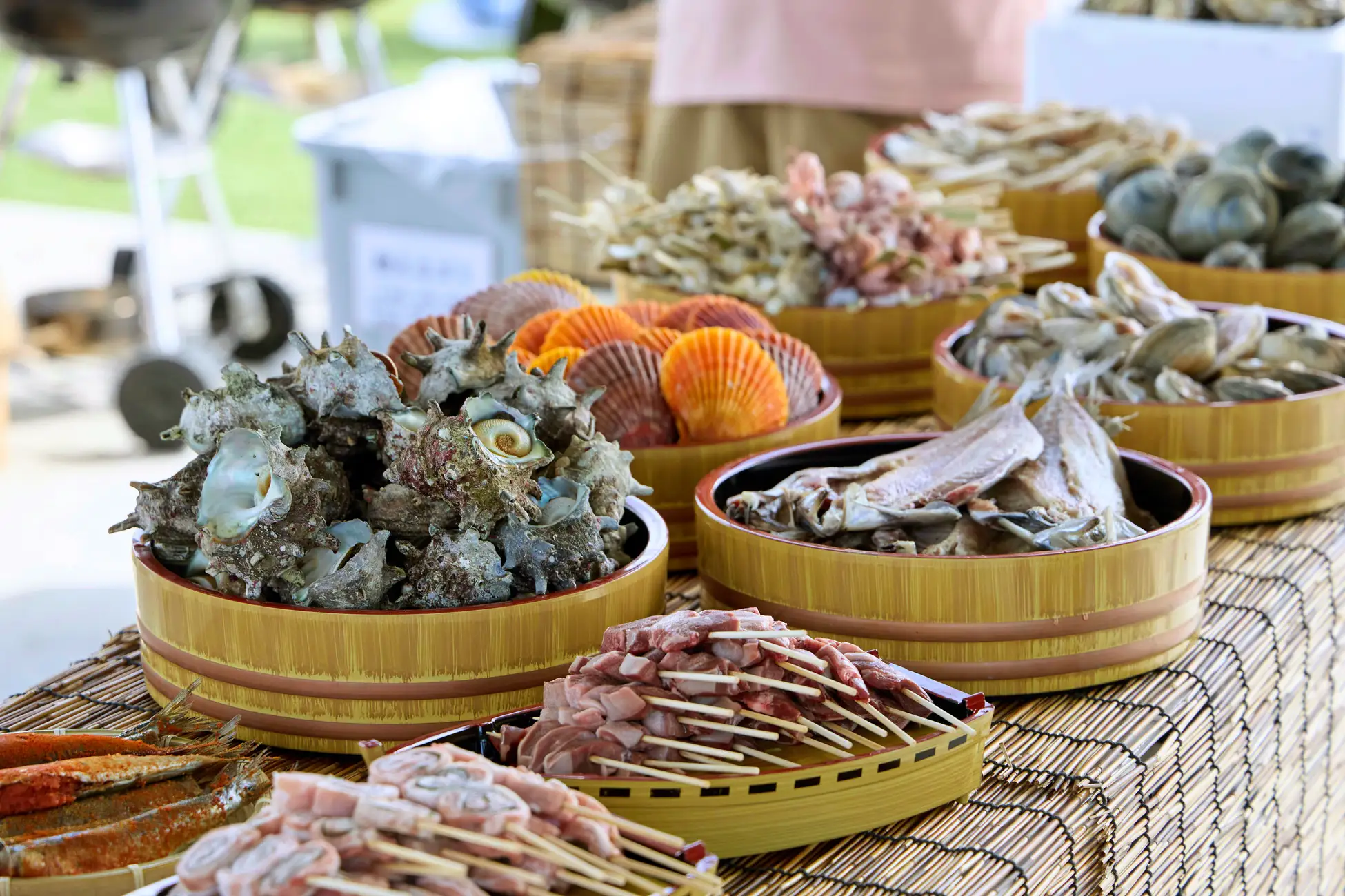 様々な海鮮串や干物の他、バーベキュー施設を運営しているルートから、お肉やお子様が楽しめるコーンバターなど主役級の脇役が様々。