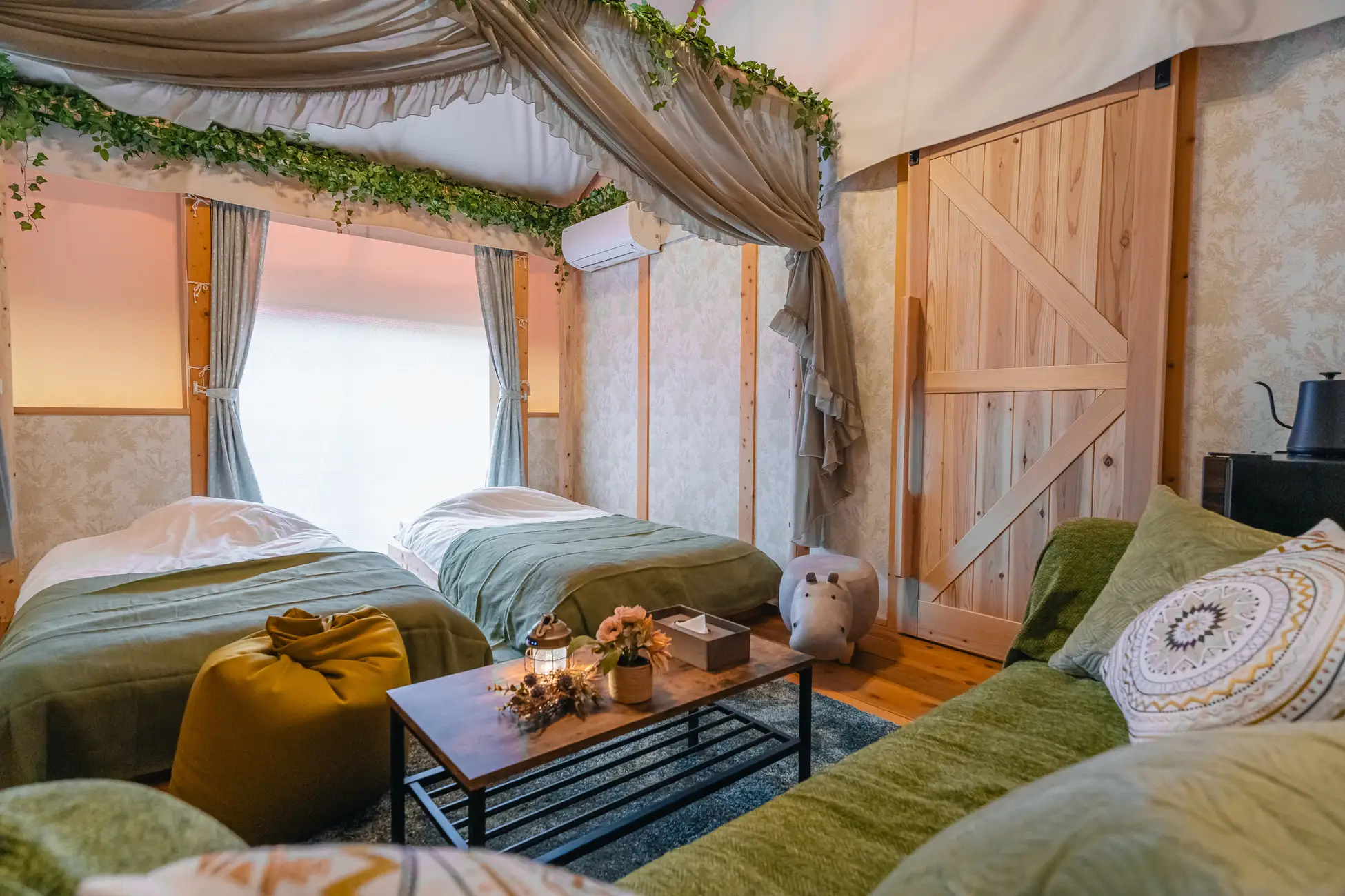 カップルやご夫婦、ご友人同士で、森に包まれる穏やかな時間をお楽しみいただけます。