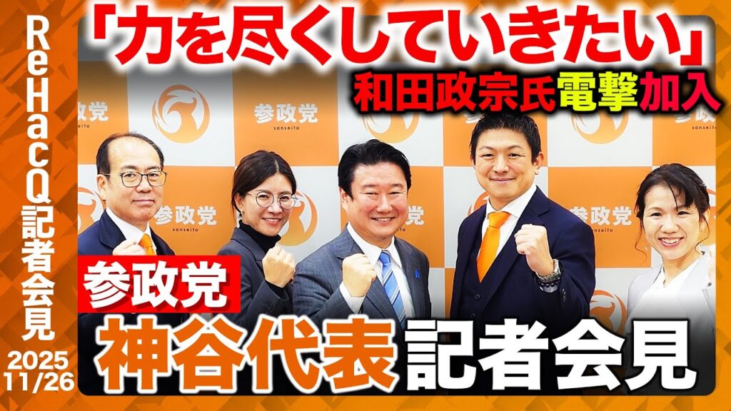 【生配信・参政党】和田政宗元参院議員 参政党政調会長補佐に就任へ「神谷代表の言葉が心を動かした」【ReHacQ記者会見 12月03日(水)】